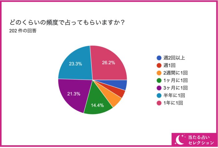 独自アンケートから、「どのくらいの頻度で占ってもらっているか」について、統計やコメントをご紹介しているので、ぜひ参考にしてみてください。