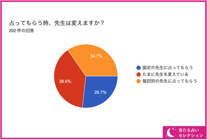 また、2位は『毎回別の先生に占ってもらう』、3位は『固定の先生に占ってもらう』となりました。